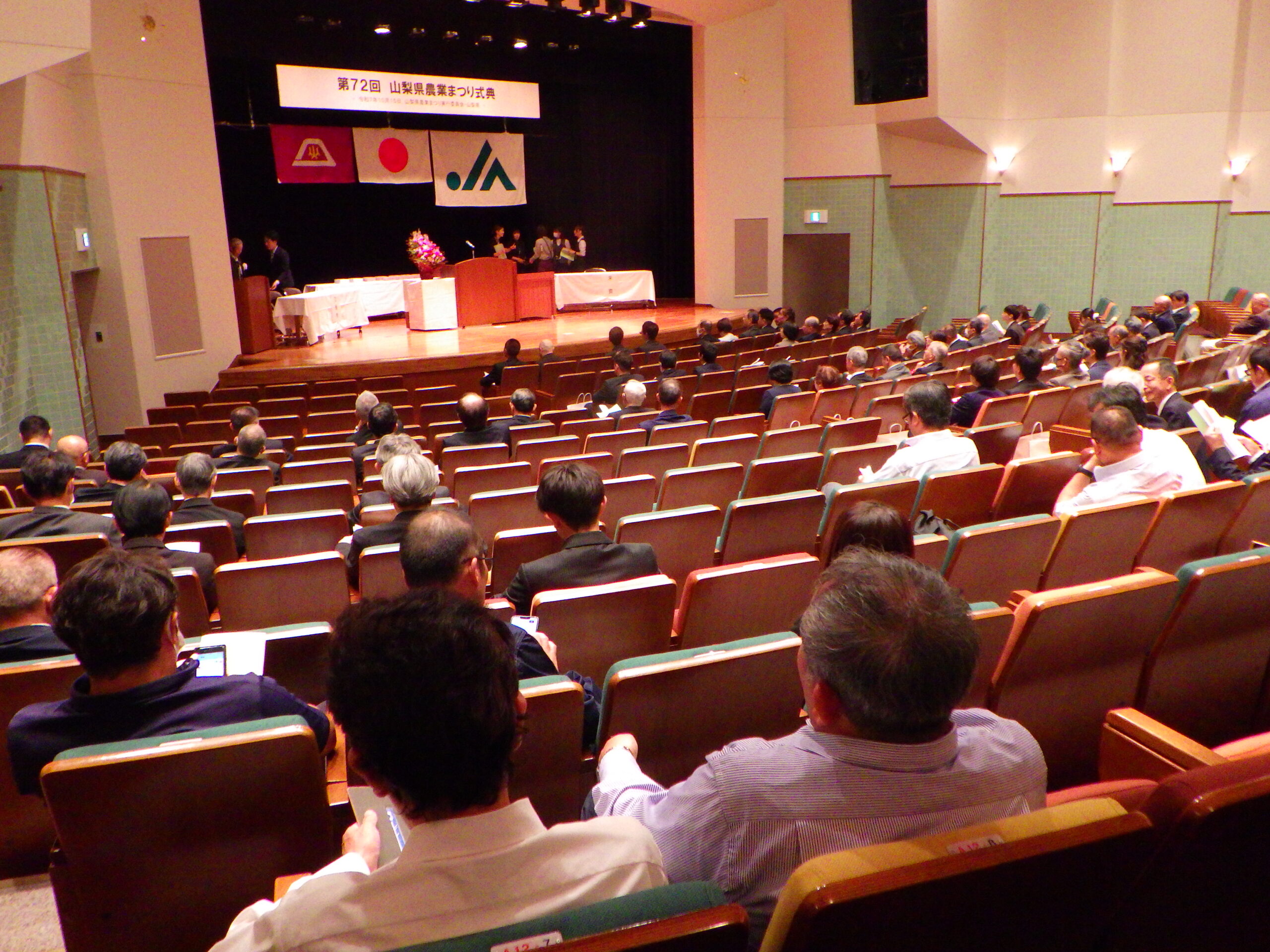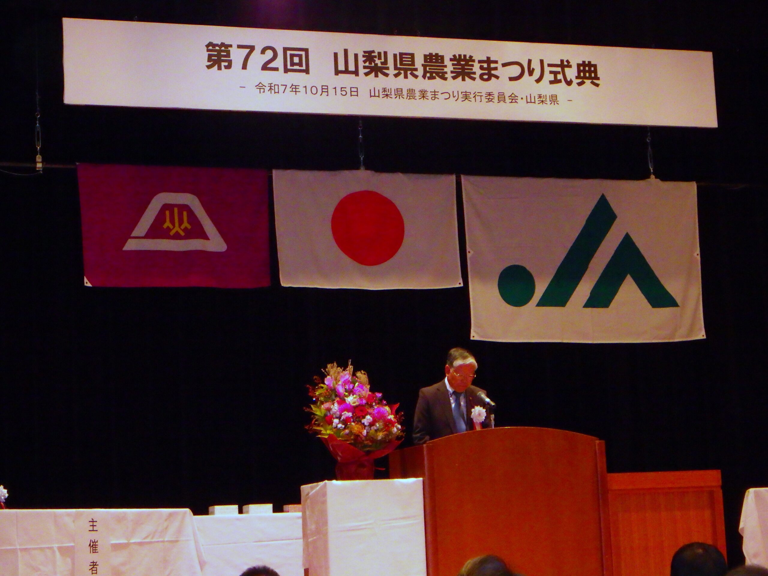 第72回山梨県農業まつりの式典が、10月15日県立文学館講堂で行われました。