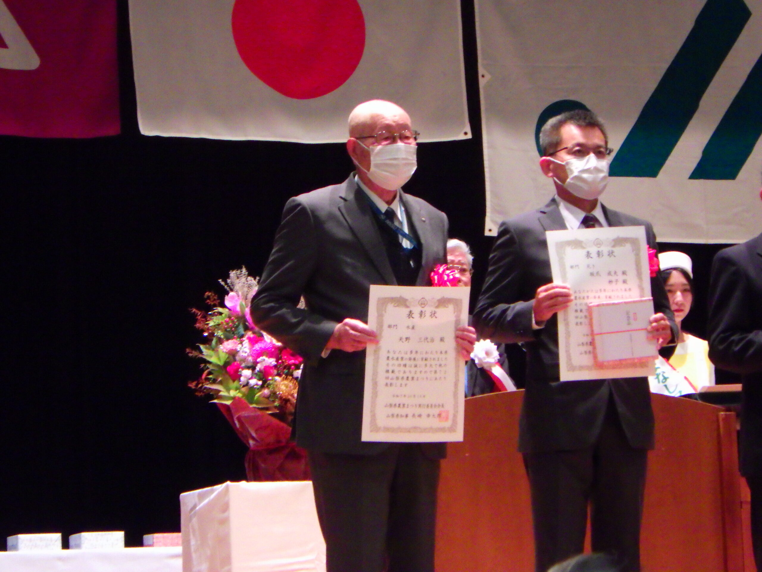 大勢の関係者が詰めかける中、農水産業功績者の水産部門として2名の方が表彰されました。