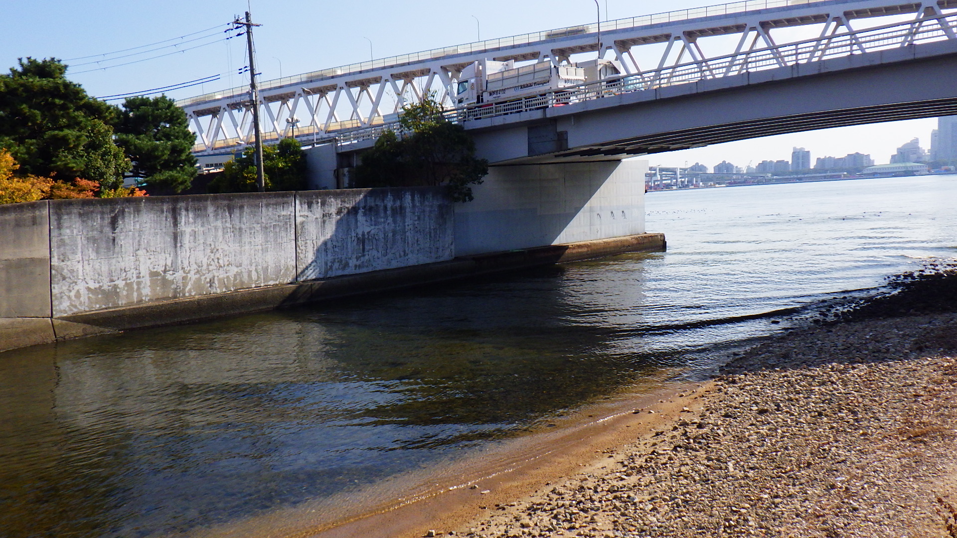 住吉川の河口から遡ると直ぐに魚影が見えました。