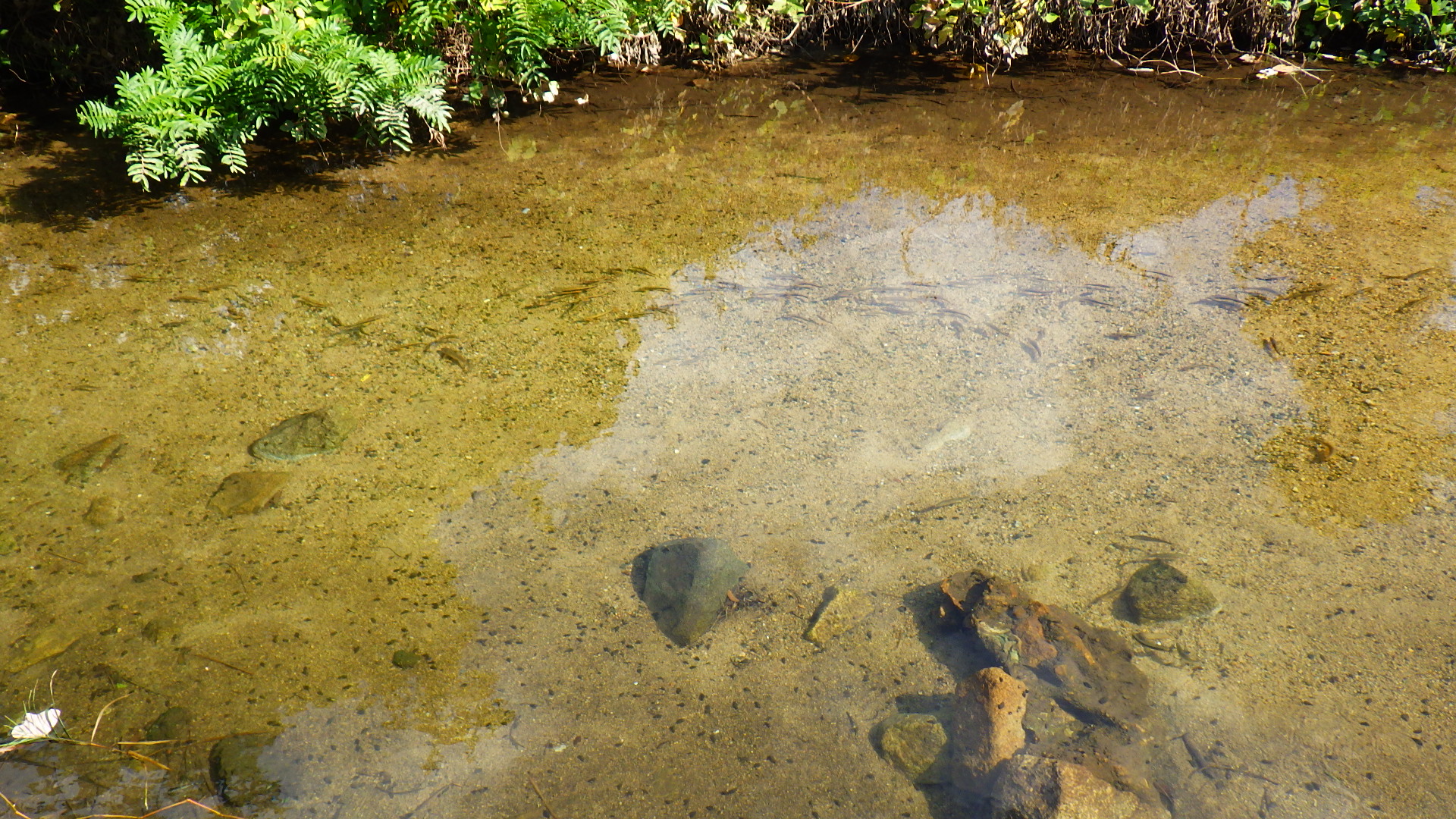11月半ばですが、アユが彼方此方に見えます。サイズは15cm程度とこの時期にしては小さいですが、規模の小さい川なのでこの程度でしょうか。それにしても数が多い。