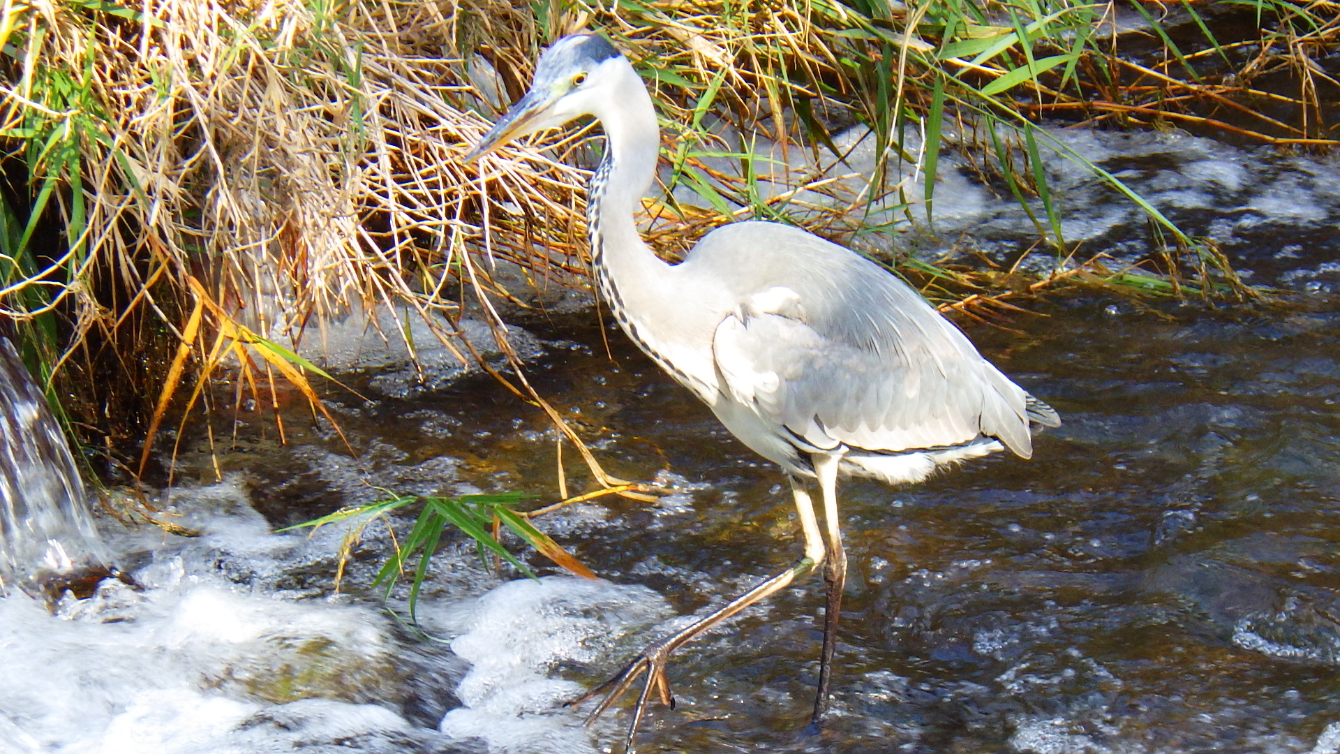 さて、今回の視察で驚いたのが鳥が逃げない。直ぐ近くで観察できます。こちらは、アオサギ。