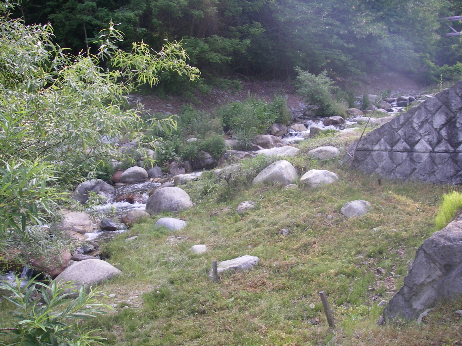 工事後約26年経っている自然石組による分散型落差工。現場だけ見ると何も手が入っていない自然な渓流ですが、それを作り出した関係者の尽力と技術には、見るたびに感嘆してしまいます。その場所とは、こんな感じです。