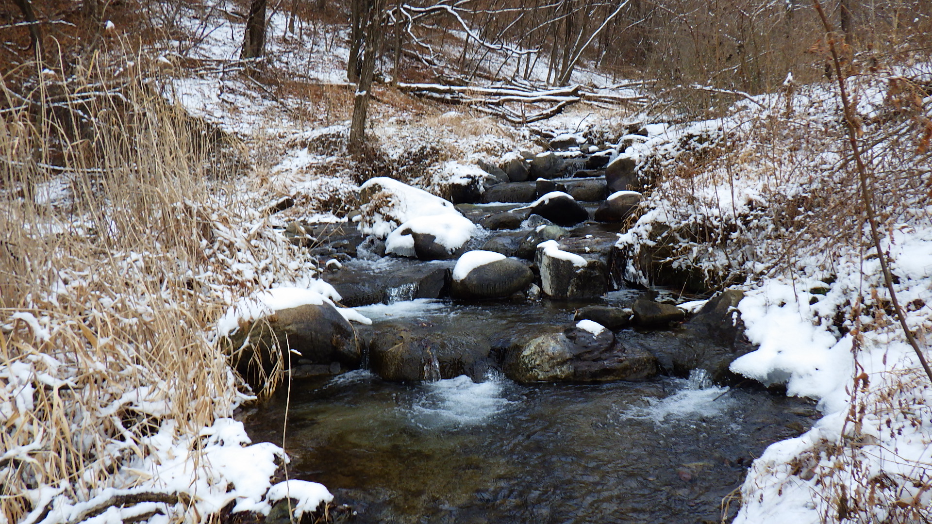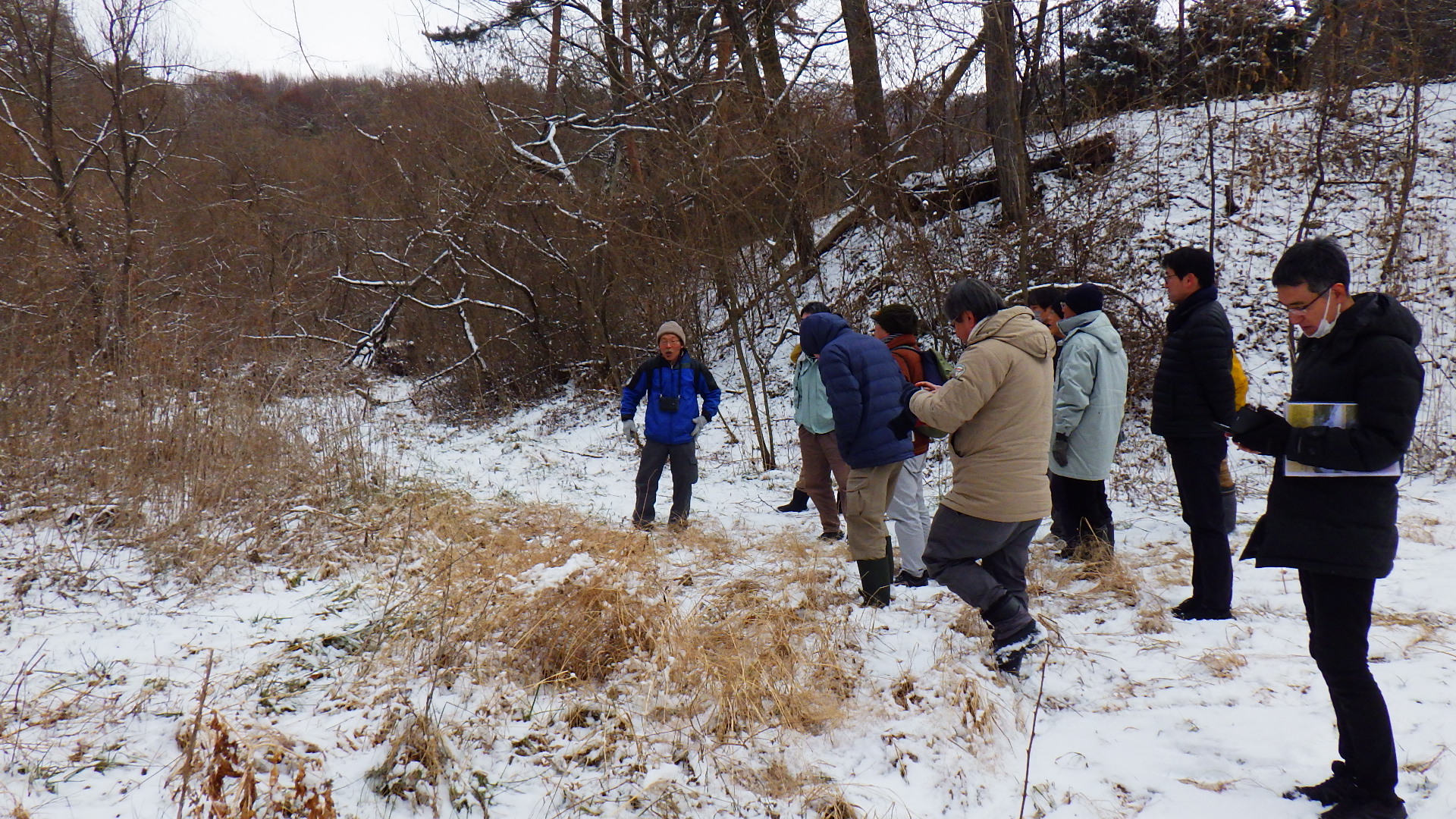 前日あいにく雪が降り寒い日となりましたが、現場でも石組みの状態や流れの変化、川虫や植物の状況など色々な視点で質問と意見交換がが続きます。