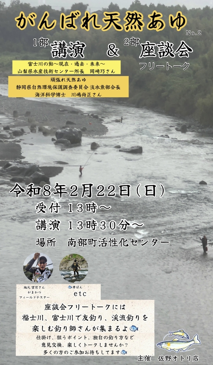 富士川の天然アユに関する講演 & 座談会が開かれます。